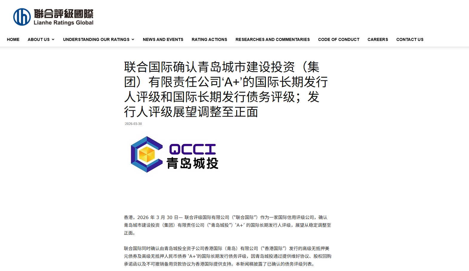 青岛城投集团成立于2008年,是青岛市首批国有资本投资运营公司试点企业。截至2024年末,青岛城投集团资产总额超4300亿元,位列2024年全国城投公司总资产榜、总收入榜第5名,共有员工24000余人。青岛城投集团拥有国内AAA和国际BBB+(惠誉)、A+(联合国际)信用评级,旗下城金控股、创业投资等下属企业拥有AAA主体信用评级。