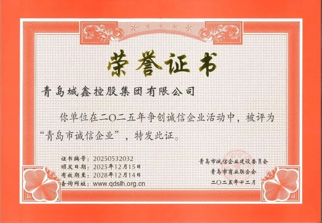 青岛城鑫控股集团有限公司作为由青岛城市建设投资(集团)有限责任公司等三家企业共同出资组建的国有企业,自2019年成立以来,始终以国有企业的责任与担当,将诚信建设贯穿企业治理、业务拓展、客户合作全过程,以实际行动践行诚信文化,凭借规范经营、履约守信的良好形象,为青岛诚信体系建设与经济高质量发展注入强劲动力,在行业内树立起国有诚信企业的标杆。