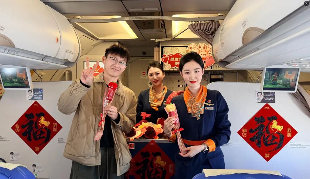 万米高空中,年味同样浓厚。除夕、春节、元宵节等关键节点,青岛航空举办了各具特色的主题航班活动。主题装饰、趣味问答、云端送福……机组用精心营造的节日氛围,让旅客在平安出行之余,也感受到了浓浓的“空中年味”。