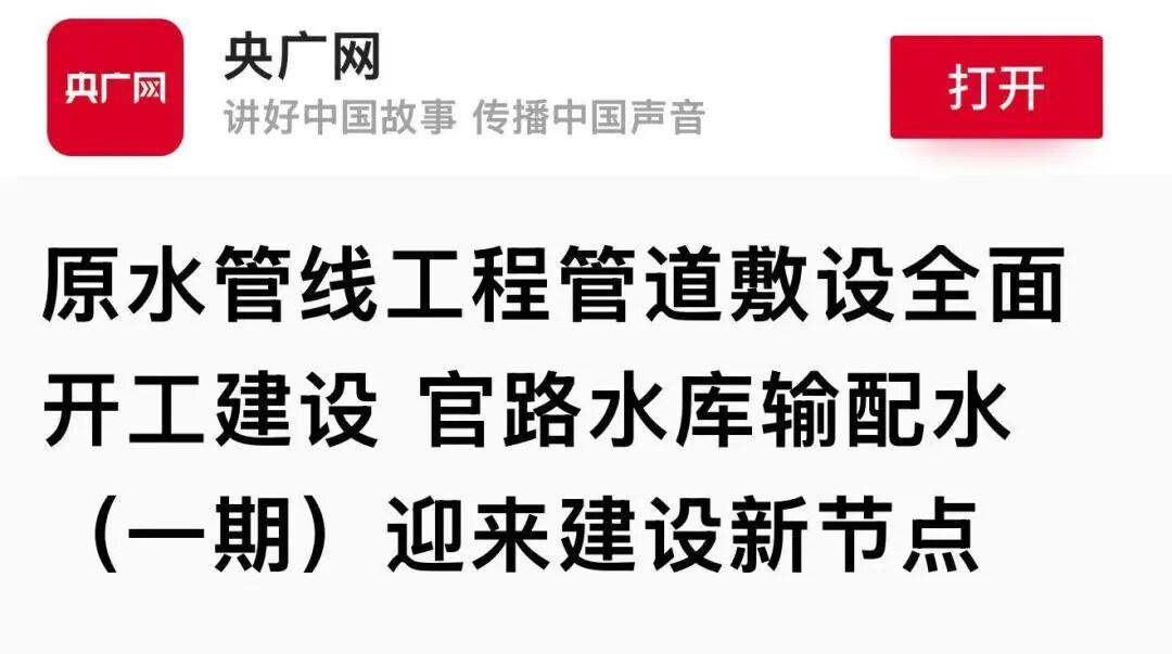 【央广网】原水管线工程管道敷设全面开工建设官路水库输配水(一期)迎来建设新节点